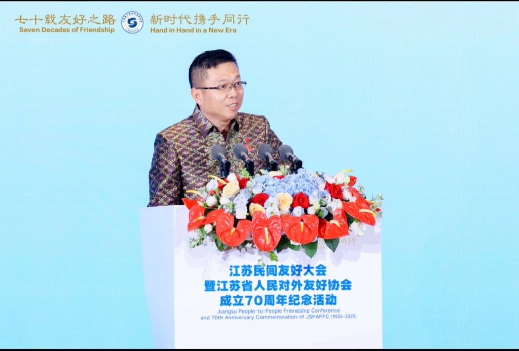 ដោយគូសរំលេចពីការអភិវឌ្ឍនៅកម្ពុជា រួមជាមួយដំណើរទស្សនកិច្ចរបស់លោកអភិបាលខេត្តជាំងស៊ូទៅកាន់ប្រទេសកម្ពុជាកាលពីខែឧសភា ឆ្នាំ២០២៥កន្លងមក លោកបណ្ឌិតក៏បានរំលេចពីទំនាក់ទំនងល្អរវាងកម្ពុជាជាមួយខេត្តជាំងស៊ូ ដូចជាតំបន់សេដ្ឋកិច្ចពិសេសខេត្តព្រះសីហនុ កិច្ចសហប្រតិបត្តិការយុទ្ធសាស្ត្ររវាងកំពង់ផែJiangyin ក្រុងWuxi ប្រទេសចិន និងកំពង់ផែស្វយ័តក្រុងព្រះសីហនុ និងការប្រកាសជាផ្លូវការឆ្នាំទេសចរណ៍ កម្ពុជា-ចិន ឆ្នាំ២០២៥ ហើយតាមរយៈវេទិកានេះ លោកបណ្ឌិតបានលើកទឹកចិត្តដល់ប្រជាជនចិន និងបរទេសទាំងអស់អញ្ជើញមកទស្សនា និងមកបណ្តាក់ទុនវិនិយោគនៅកម្ពុជាដើម្បីបន្តបង្កើនកិច្ចរួមចំណែកអភិវឌ្ឍកម្ពុជាក្រោមម្លប់សុខសន្តិភាព ហើយសមាគមមិត្តភាពកម្ពុជា-ចិនដែលមានអាយុ២៥ឆ្នាំមកនេះបានត្រៀមខ្លួនរួចជាស្រេចក្នុងកិច្ចសម្របសម្រួល និងជាស្ពានទំនាក់ទំនងដ៏ល្អរវាងប្រជាជនកម្ពុជានិងប្រជាជនចិននិយាយដោយឡែក រវាងប្រជាជនកម្ពុជានិងប្រជាជាតិបរទេសនានាទាំងអស់និយាយរួម៕