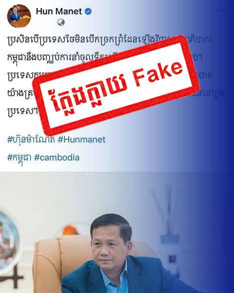 យោងតាមបណ្តាញសង្គមផ្លូវការ របស់សម្តេចធិបតី នាថ្ងៃទី២៧ ខែមិថុនានេះ មានខ្លឹមសារដោយភ្ជាប់មកជាមួយ រូបភាព បញ្ជាក់ពីគណនី ក្លែងក្លាយ និងមានខ្លឹមសារទាំងស្រុងថា ៖