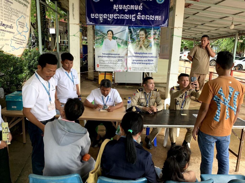 សំឡេង«ឱកាសការងារនេះ យើងផ្សព្វផ្សាយពីរោងចក្រសហគ្រាសដែលមានតម្រូវការ សហគ្រាសមួយណាផ្នែកអ្វី ទីតាំងនៅទីណា លេខទូរស័ព្ទ ត្រូវការកម្លាំងពលកម្មប៉ុន្មាន នេះគឺឯកសារដែលយើងផ្ដល់ព័ត៌មានជូនពលករដែលត្រឡប់មកពីប្រទេសថៃ ដើម្បីឱ្យពួកគាត់មានឱកាសការងារធ្វើភ្លាមៗផ្ទាល់តែម្ដង សម្រាប់ធានាសន្ដិសុខស្បៀង និងជីវភាព។ នេះគឺជាយន្ដរបស់ឯកឧត្ដមរដ្ឋមន្រ្ដីក្រសួងការងារអនុវត្ដតាមអនុសាសន៍របស់សម្ដេចតេជោ និងសម្ដេចធិបតី ហើយឯកឧត្ដមរដ្ឋមន្រ្ដីបានណែនាំឱ្យមន្រ្ដីគ្រប់ច្រកទាំង៦ តាមព្រំដែន ដើម្បីផ្ដល់ព័ត៌មានតាមមណ្ឌលសុំចត និងមណ្ឌលទទួលពលករ»។
