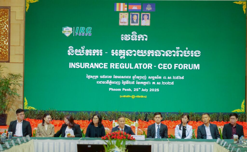 ភ្នំពេញ៖ និយ័តករធានារ៉ាប់រងកម្ពុជា និងតំណាងក្រុមហ៊ុនធានារ៉ាប់រងនៅកម្ពុជា នៅព្រឹកថ្ងៃទី២៥ ខែកក្កដា ឆ្នាំ២០២៥នេះ បានបើកវេទិការួមគ្នា ដើម្បីពិនិត្យ និងពិភាក្សាលើបញ្ហាប្រឈមនានា ដើម្បីស្វែងរកដំណោះស្រាយរួម សំដៅជំរុញទីផ្សារធានារ៉ាប់រងនៅកម្ពុជា ឱ្យកាន់តែមានភាពរីកចម្រើន និងមានទំនុកចិត្តពីប្រជាពលរដ្ឋ។