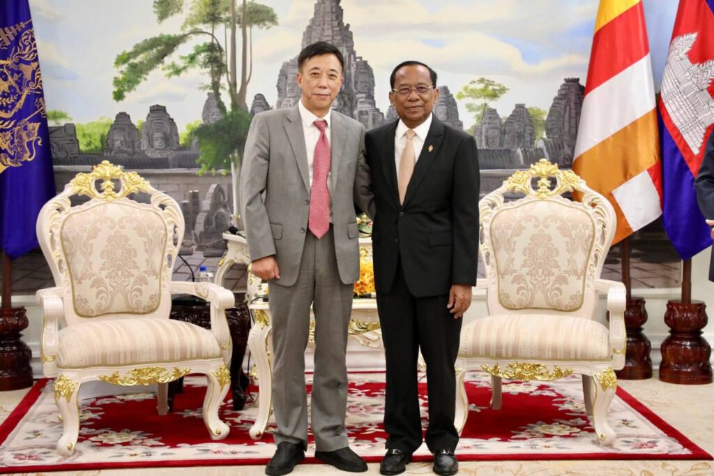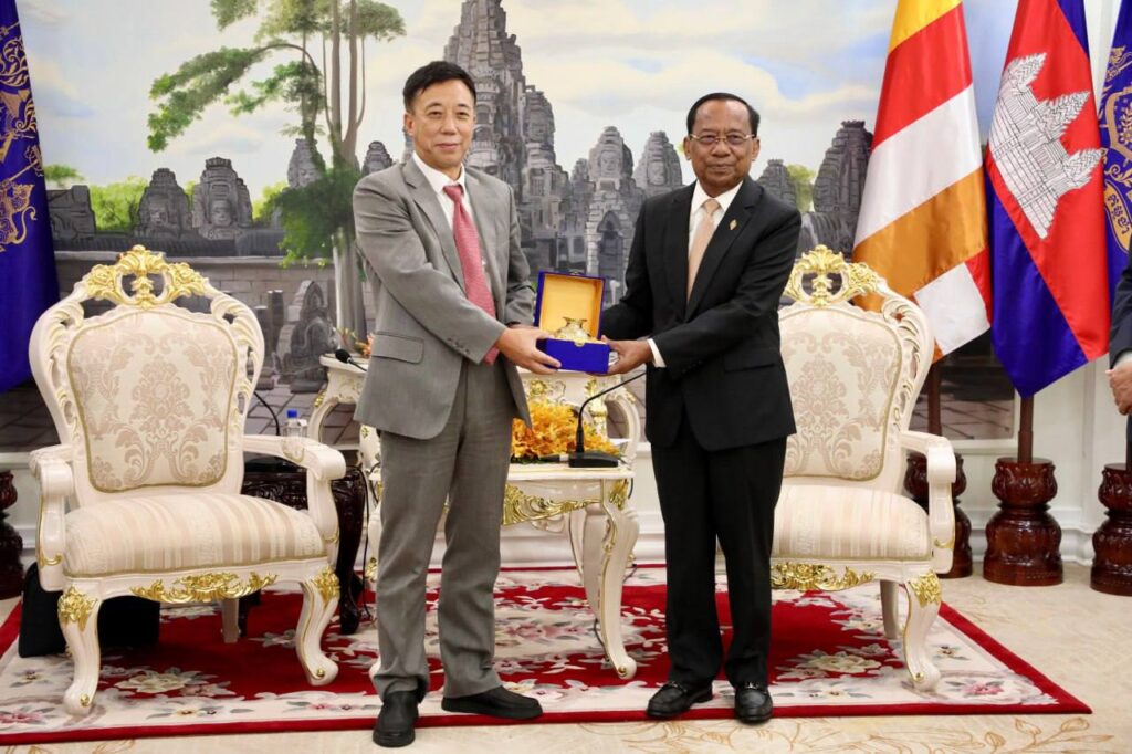 (ភ្នំពេញ)៖ ព្រឹកថ្ងៃទី១៨ ខែសីហា ឆ្នាំ២០២៥ នៅវិមានរដ្ឋសភា ឯកឧត្តម វង សូត អនុប្រធានទី២រដ្ឋសភាបានអនុញ្ញាតឱ្យលោកសាស្រ្តាចារ្យបណ្ឌិត ហ៊ូ យ៉ុងអិន (Hu Rongen) នាយកវិទ្យាស្ថាននីតិសាស្រ្តផ្លូវសូត្រសមុទ្ររបស់ប្រទេសចិនដឹកនាំគណៈប្រតិភូចូលជួបសម្តែងការគួរសម។