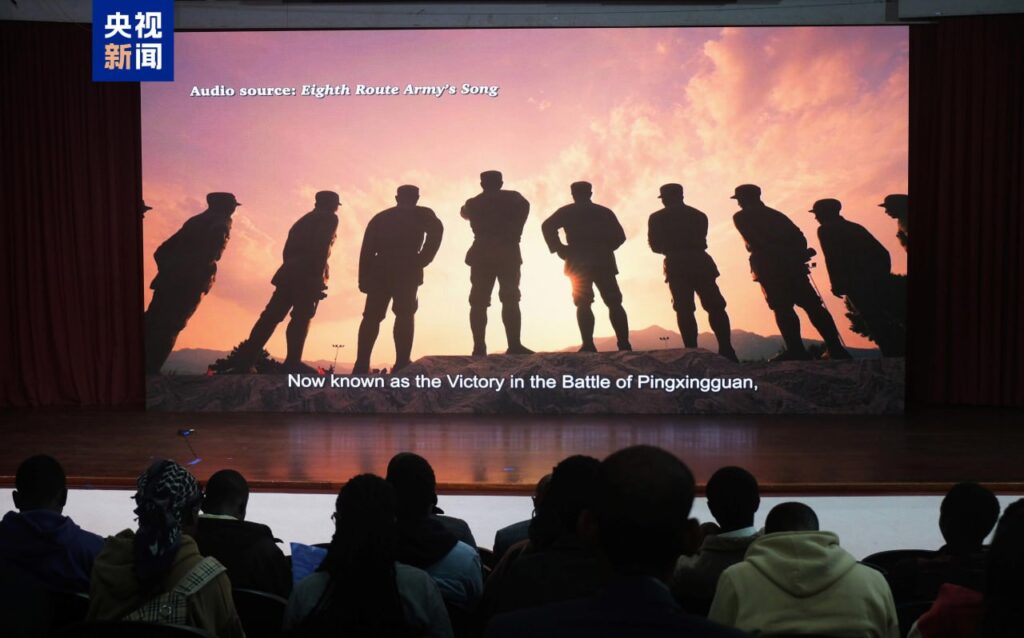 ក្នុងសកម្មភាពនេះ ភាពយន្តឯកសារខ្នាតខ្លីមួយចំនួនដែលផលិតដោយCGTN នៃអគ្គស្ថានីយវិទ្យុនិងទូរទស្សន៍មជ្ឈិមចិន ដូចជារឿង«អ្នកចម្បាំងត្រូវបំភ្លេច៖ ការរួមចំណែកនិងការពលីជីវិតរបស់ទាហានអាហ្វ្រិក» ត្រូវបានបញ្ចាំង។ ភ្ញៀវកិត្តិយសបាននិយាយព្រមៗគ្នាថា ស្នាដៃភាពយន្តទាំងនេះបានបង្ហាញពីតួនាទីសំខាន់របស់ប្រជាជនអាហ្វ្រិកក្នុងសង្គ្រាមប្រឆាំងហ្វាស៊ីស។