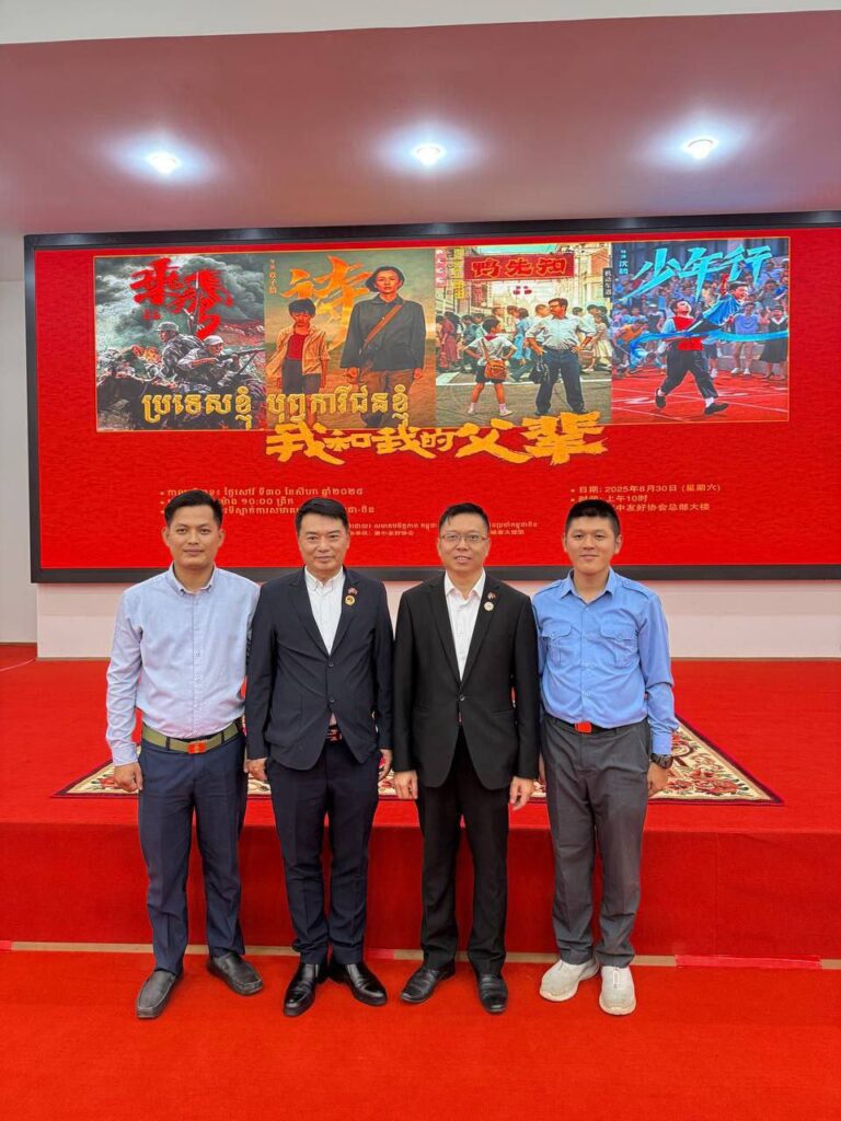 ភ្នំពេញ៖ ព្រឹកថ្ងៃទី៣០ ខែសីហា ឆ្នាំ២០២៥ នៅសមាគមមិត្តភាពកម្ពុជា-ចិន មានរៀបចំកម្មវិធីទស្សនាភាពយន្តដែលមានចំណងជើងថា ប្រទេសខ្ញុំ បុព្វការីខ្ញុំ ក្រោមកិច្ចសម្របសម្រួលពីស្ថានទូតចិនប្រចាំកម្ពុជា។