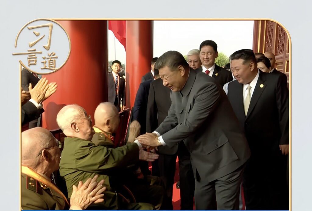 ថ្ងៃទី ៣ ខែកញ្ញា នៅលើវិមានធានអានមិន មានទិដ្ឋភាពគួរឱ្យចាប់អារម្មណ៍មួយ។ មុន បើកពិធីរំលឹកខួបទី ៨០ នៃថ្ងៃជ័យជម្នះលើសង្គ្រាមប្រជាជនចិនប្រឆាំងការឈ្លានពាន របស់ជប៉ុននិងសង្គ្រាមពិភពលោកប្រឆាំងនឹងហ្វាស៊ីស ពេលឡើងលើវិមានធានអានមិន លោកXi Jinping ប្រធានរដ្ឋចិនបានចាប់ដៃយ៉ាងស្និទ្ធស្នាលជាមួយតំណាងសមមិត្តចាស់និងអតិតយុទ្ធជនដែលធ្លាប់ចូលរួមសង្គ្រាមប្រជាជនចិនប្រឆាំងការឈ្លានពានរបស់ជប៉ុន ដើម្បីសម្តែងការគោរពដ៏ខ្ពង់ខ្ពស់ចំពោះពួកគេ។