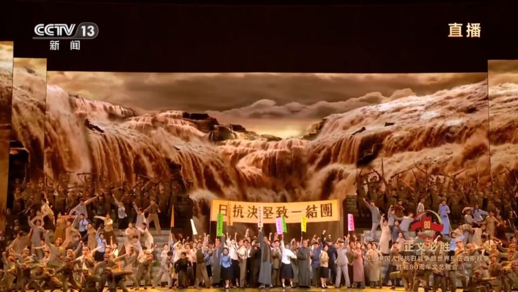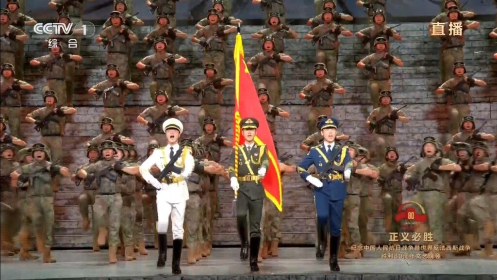 នៅវេលាម៉ោង៨ យប់ថ្ងៃទី៣ ខែកញ្ញា រាត្រីសមោសរអបអរខួបទី៨០នៃថ្ងៃជ័យជម្នះនៃសង្គ្រាមប្រជាជនចិនប្រឆាំងនឹងការឈ្លានពានរបស់ជប៉ុននិងថ្ងៃជ័យជម្នះនៃសង្គ្រាមពិភពលោកប្រឆាំងនឹងហ្វាស៊ីស ក្រោមប្រធានបទ «សច្ចយុត្តិធម៌ប្រាកដជាឈ្នះ» បានរៀបចំធ្វើនៅវិមានសភាប្រជាជនក្រុងប៉េកាំង ។ ថ្នាក់ដឹកនាំចិនមានលោក Xi Jinping ប្រធានរដ្ឋចិនជាដើម យុទ្ធជនជើងចាស់ដែលធ្លាប់ចូលរួមការប្រយុទ្ធប្រឆាំងនឹងការឈ្លានពានរបស់ជប៉ុន និងតំណាងអ្នកទទួលបានគ្រឿងឥស្សរិយយស ព្រមនិងតំណាងប្រជាជននិងឥស្សរជនគ្រប់មជ្ឈដ្ឋានបានចូលរួមទស្សនាការសម្តែងសិល្បៈ ៕