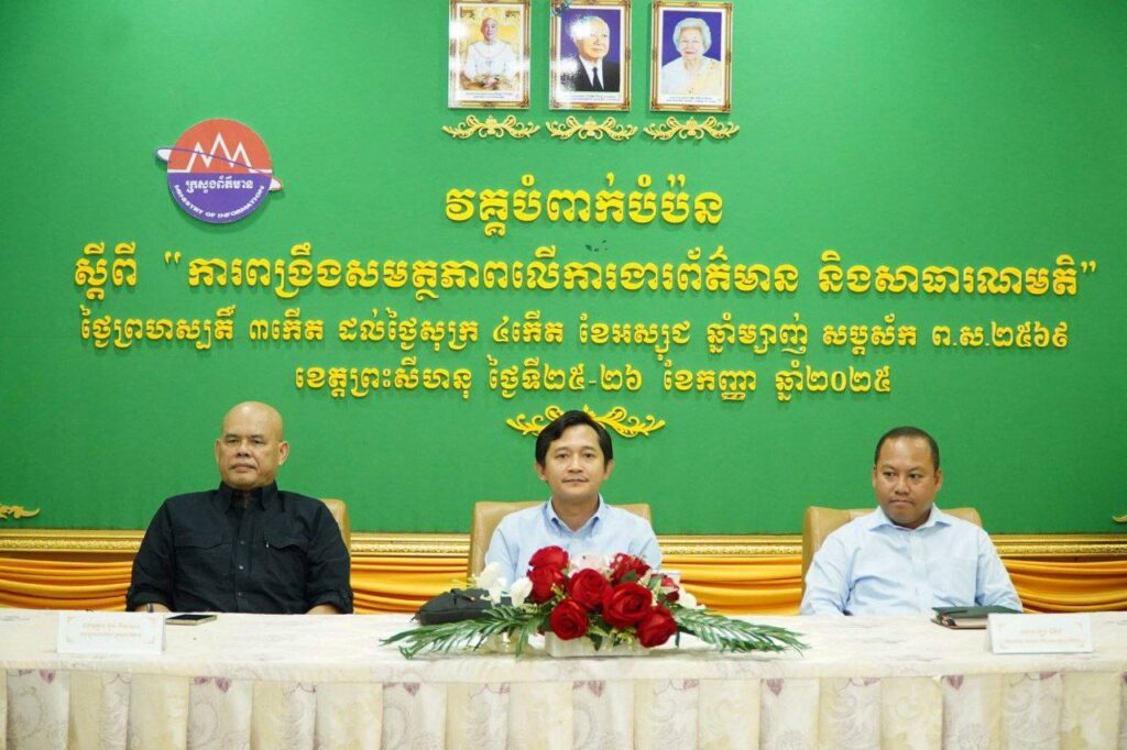 ព្រះសីហនុ៖ មន្ត្រីជាន់ខ្ពស់ក្រសួងព័ត៌មាន និងរដ្ឋបាលខេត្តព្រះសីហនុបានចាត់ទុកអ្នកសារព័ត៌មានដែលមានវិជ្ជាជីវៈ គឺជាដៃគូដ៏សំខាន់ មិនអាចខ្វះបាន សម្រាប់ការធានាសិទ្ធិទទួលព័ត៌មាន ជម្រុញប្រសិទ្ធភាពការងារសាធារណមតិ និងការប្រយុទ្ធប្រឆាំងព័ត៌មានក្លែងក្លាយ។