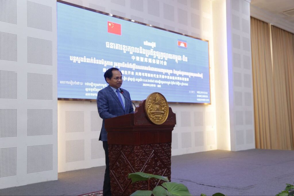 វេទិកាស្តីពីធនាគាខួរក្បាល និងប្រព័ន្ធផ្សព្វផ្សាយកម្ពុជា-ចិន ក្រោមប្រធានបទ បន្តស្នងទំនាក់ទំនងមិត្តភាព រួមគ្នាបើកទំព័រថ្មី នៃសហគមន៍ជោគវាសនារួមកម្ពុជា-ចិន គ្រប់រដូវកាល ក្នុងយុគសម័យថ្មី ត្រូវបានរៀបចំឡើង នៅរាជបណ្ឌិត្យសភាកម្ពុជា ក្រុងភ្នំពេញ នាថ្ងៃទី៧ ខែវិច្ឆិកា ឆ្នាំ២០២៥។
