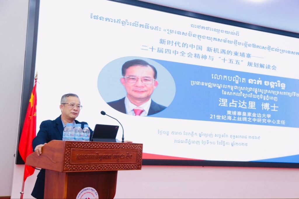 (ភ្នំពេញ) រសៀលថ្ងៃទី១០ ខែវិច្ឆិកា ឆ្នាំ២០២៥ នៅសមាគមមិត្តភាពកម្ពុជា-ចិន ក្រុមបញ្ញវន្តជាន់ខ្ពស់និងក្រុមអ្នកសារព័ត៌មាន កម្ពុជា-ចិន ៦រូប បានរួមគ្នារៀបចំបាឋកថាឈ្វេងយល់ពី «ផែនការ ៥ឆ្នាំលើកទី១៥ ៖ ប្រទេសចិនក្នុងយុគសម័យថ្មី បង្កើតឳកាសថ្មីដល់ប្រទេសកម្ពុជា»។ នៅក្នុងវេទិកាដែលបានសហការរៀបចំឡើងដោយសមាគមអ្នកស្រាវជ្រាវវឌ្ឍនភាពកម្ពុជា-ចិន មជ្ឈមណ្ឌលកម្ពុជាដើម្បីសិក្សារស្រាវជ្រាវផ្លូវសូត្រសមុទ្រ និងវិទ្យុមិត្តភាពកម្ពុជា-ចិននៃអគ្គស្ថានីយវិទ្យុនិងទូរទស្សន៍មជ្ឈិមចិន។