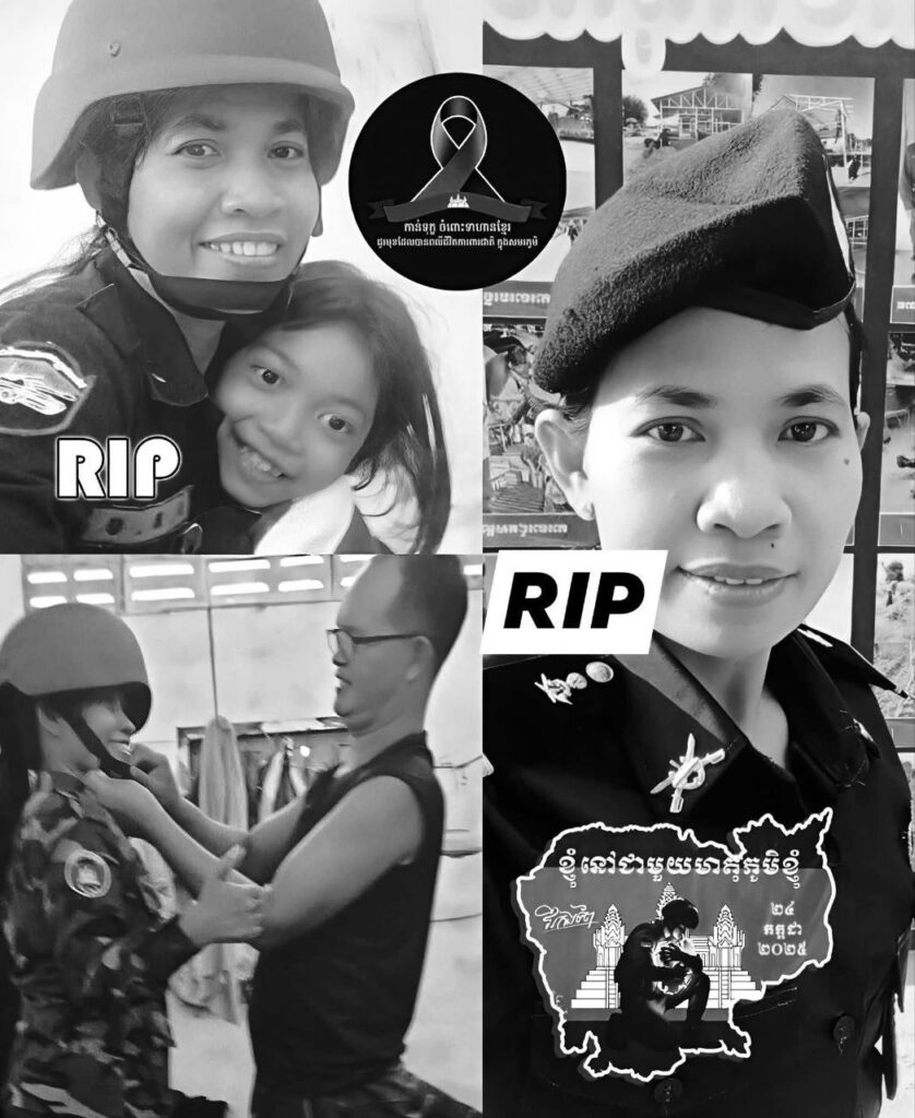 “On behalf of the district administration and my own behalf, I would like to express my deepest condolences to the family of the deceased: Army Hero, Lieutenant Colonel Muth Savorn,…the Army Hero…who sacrificed her life on the front line in the direction of Prey Chan village (Sla Kram point), Banteay Meanchey province,” Sreng Sokha wrote.