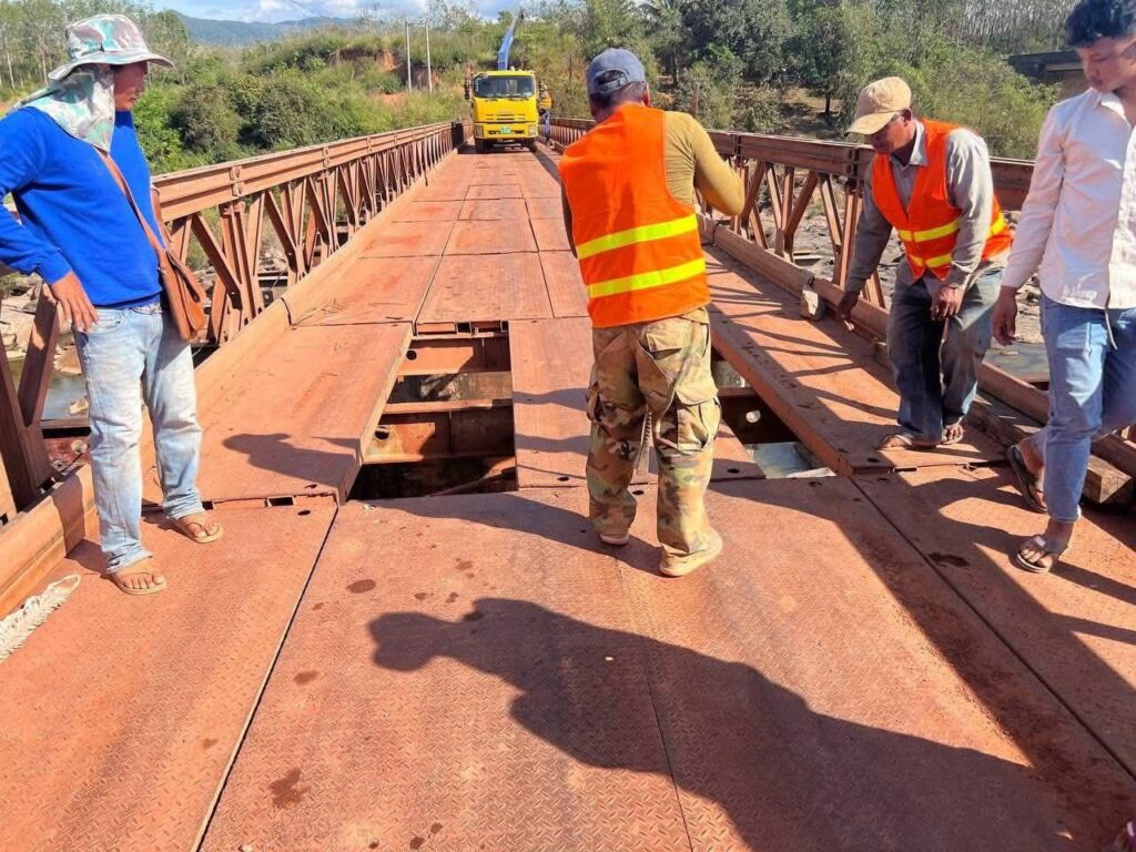 ស្ពានដែកបាឡេ-ជ័យជម្នះ ឆ្លងកាត់ស្ទឹងមេទឹក ឃុំថ្មដា ដែលរងការខូចខាតដោយសារគ្រាប់ផ្លោងរបស់ទាហានថៃ អាចធ្វើចរាចរណ៍បានហើយ នៅព្រឹកនេះ