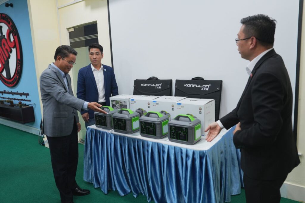 មូលនិធិចិន PEACELAND និងសមាគមអ្នកស្រាវជ្រាវវឌ្ឍនភាពកម្ពុជា-ចិន បានរួមគ្នាផ្តល់ជំនួយសម្ភារៈឧបករណ៍ផ្ទុកចរន្តអគ្គិសនីដែលអាចសាកចរន្តអគ្គិសនីបានទាំងតាមប្រព័ន្ធអគ្គិសនី និងតាមរយៈបន្ទះសូឡា ជូនដល់ក្រុមការងារបោសសម្អាតមីននៃមជ្ឈមណ្ឌលសកម្មភាពកំចាត់មីនកម្ពុជា (CMAC)។
