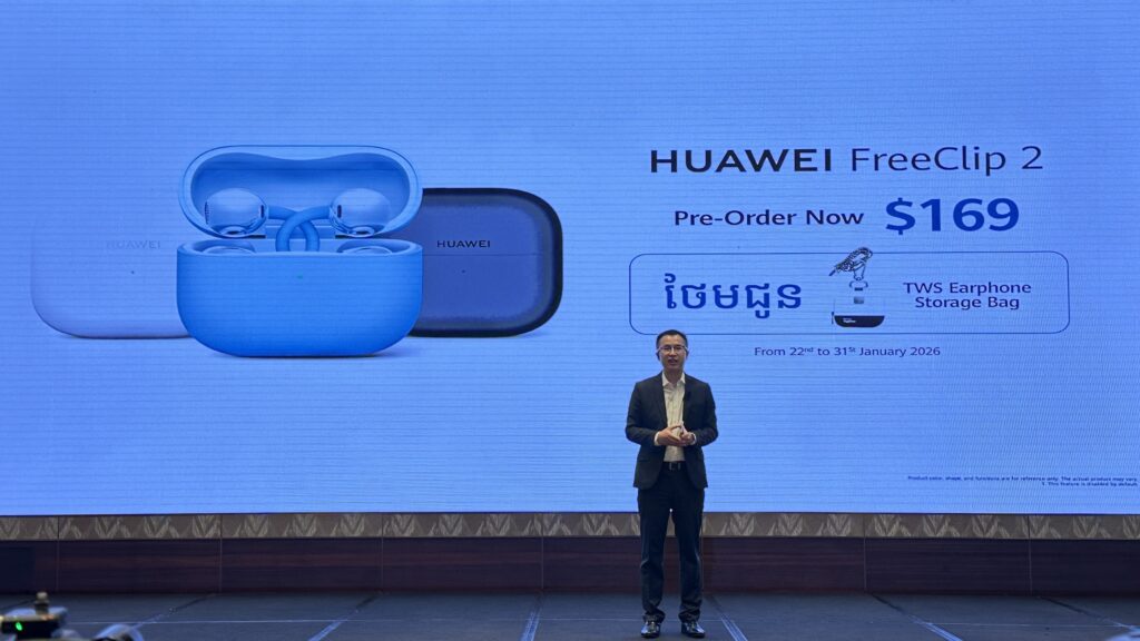 កាសស្តាប់ត្រចៀកថ្មី ទំនើបឆ្នាំ២០២៦ (Huawei FreeClip 2) ត្រូវបានចេញលក់ហើយនៅក្នុងប្រទេសកម្ពុជាចាប់ពីថ្ងៃទី២៣ ខែមករា ឆ្នាំ២០២៦ នេះតទៅ។